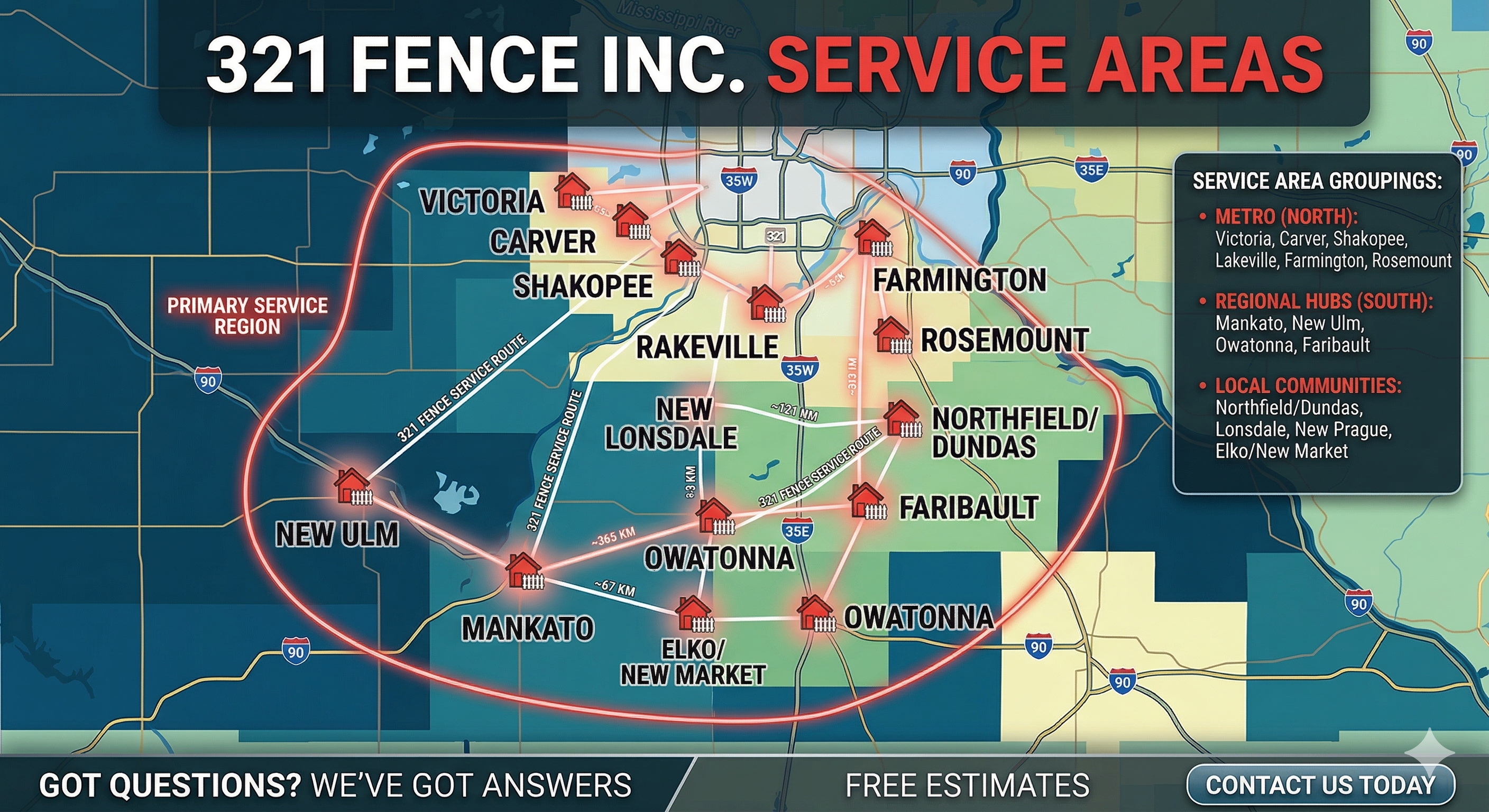 Fence Installation Service Areas | Southern Minnesota | 321 Fence Inc.